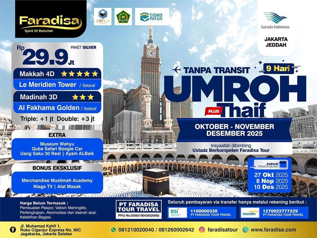 Umroh SILVER, 9 Hari, Plus Thoif, by Garuda Indonesia (27 Oktober)