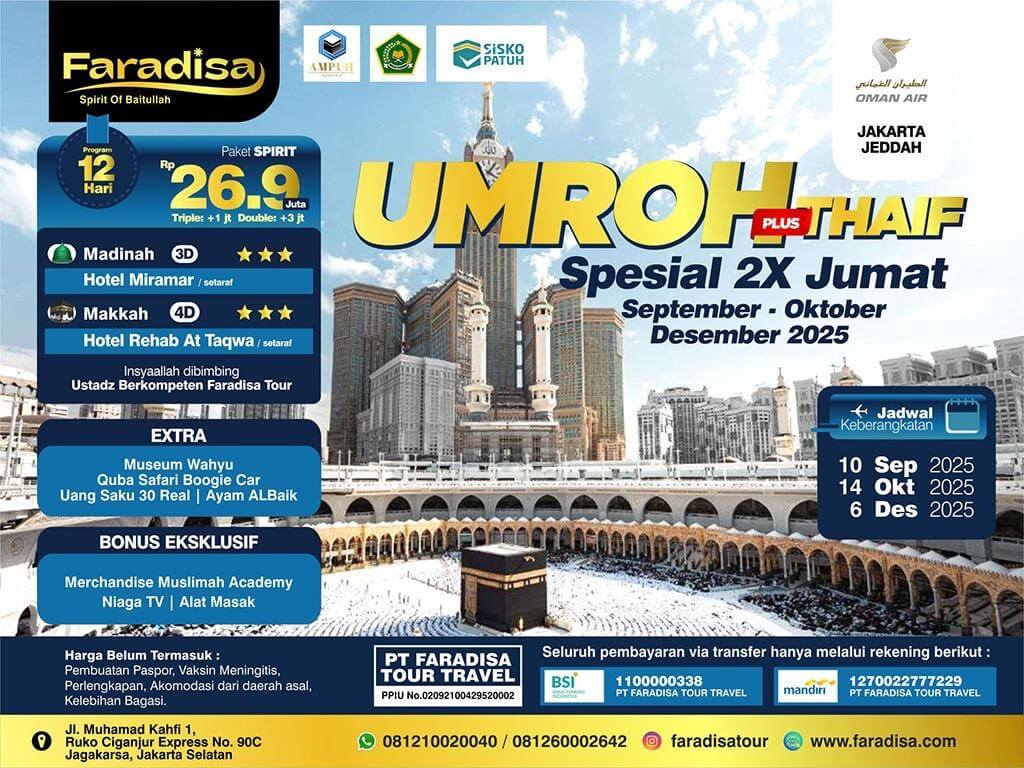 Umroh Hemat Spirit of Baitullah, 12 Hari, 2x Jumatan Plus Thoif (14 Oktober 2025)
