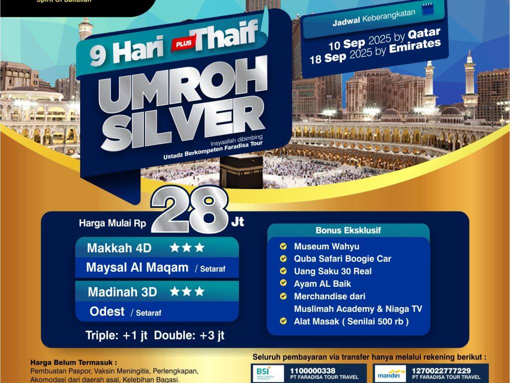 Paket Silver Umroh Plus Thoif, Start Jakarta, 09 hari, by Qatar (10 September 2025)